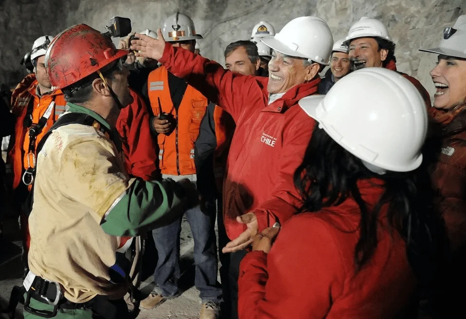 În noaptea de 12 octombrie, un salvator a fost coborât în mină în interiorul capsulei. Chiar după miezul nopții, primul miner a fost scos la suprafață, iar până dimineată au fost toți salvați, aceștia ieșind la suprafață după 69 de zile de izolare. Președintele chilian Sebastián Piñera i-a întâmpinat pe mineri la suprafață și, când ultimul a ieșit din capsulă, a condus mulțimea adunată în cântarea imnului național chilian. Această moment atent coregrafiat – caracterizat de unii observatori drept teatru politic – a fost documentat de sute de jurnaliști din întreaga lume.