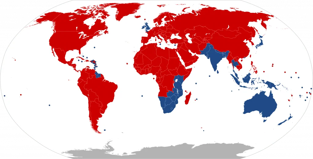 Astăzi, doar 35% din țări se deplasează pe stânga. Acestea includ India, Indonezia, Irlanda, Malta, Cipru, Japonia, Noua Zeelandă, Australia și, cel mai recent, Samoa în 2009.
