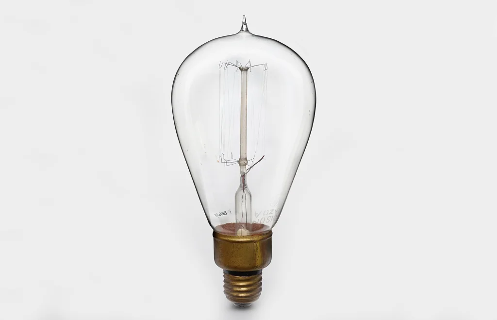 În 1879, Thomas Alva Edison a realizat o inovație semnificativă prin inventarea unui filament de carbon, pe care l-a plasat într-un bec vidat, reușind să obțină o durată de funcționare de 40 de ore. Ulterior, în 1880, durata de viață a becurilor sale a crescut la 600 de ore, făcându-le suficient de rentabile pentru a putea fi comercializate. A fost un pas important către aducerea iluminatului electric în casele oamenilor, contribuția sa a marcând începutul unei revoluții în tehnologia de iluminat, care va evolua în continuare pentru a deveni mai eficientă și mai practică.